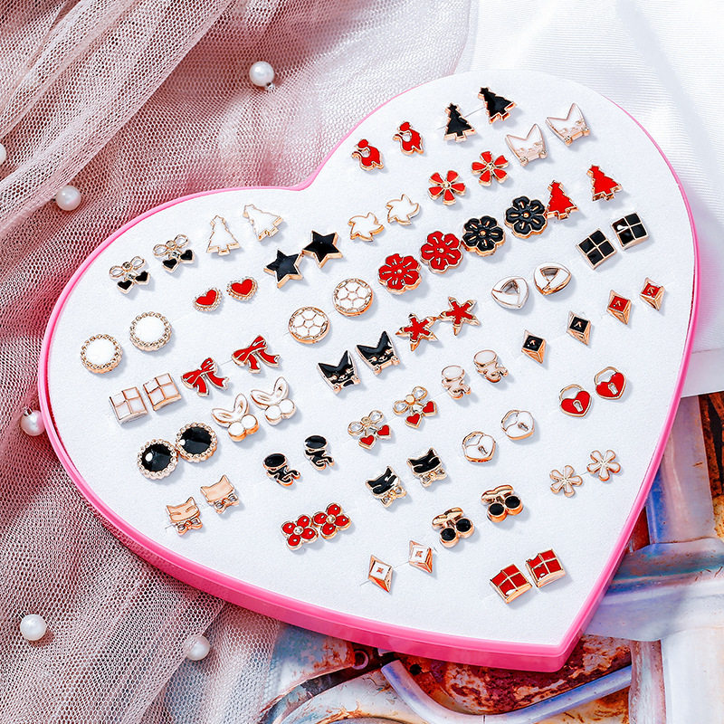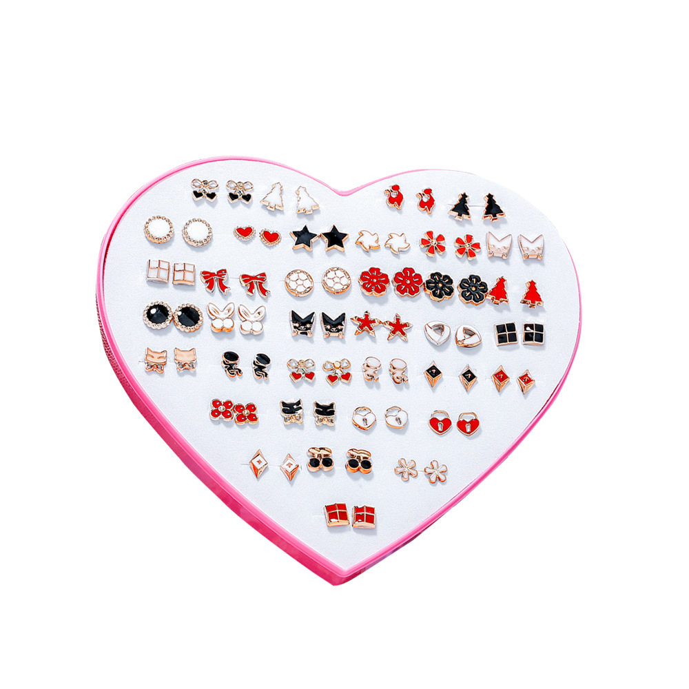 Japan and South Korea 36 pairs of peach heart boxed glue stick ear acupuncture small creative plastic glue needle simple hypoallergenic earrings with pierced ears