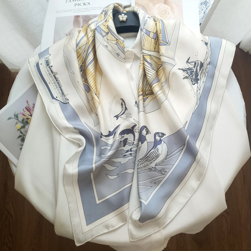 18mm ~ spring new luxury heavy silk scarf large square scarf 90cm printed sauna silk scarf