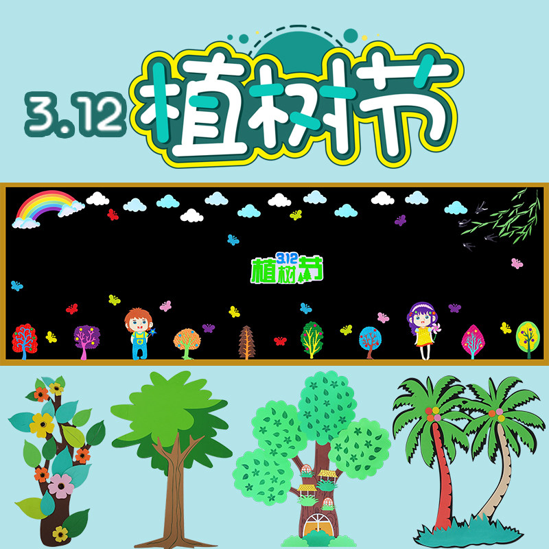Tree Planting Festival Protection Greenery Primary And Secondary School Campus Publicity Themed Cartoon Tree Wall Stickup Decoration Placement Ring Creation