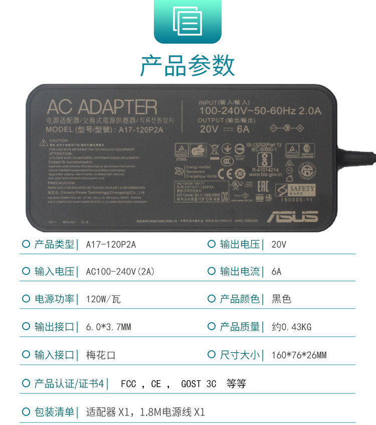 A17-120P2A SUSTech Tianselected UX534F M7400Q Notebook charger 20V6A120W adapter