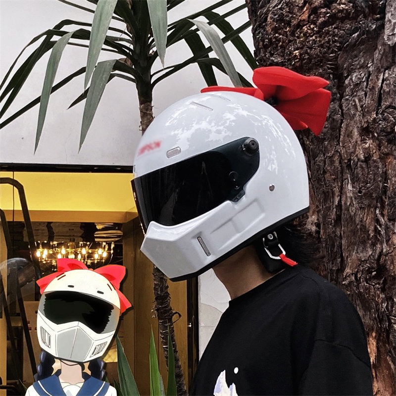 Ultra-light fiberglass riding Lai Meng Xuejie helmet bow locomotive female knight retro motorcycle full helmet anti-fog