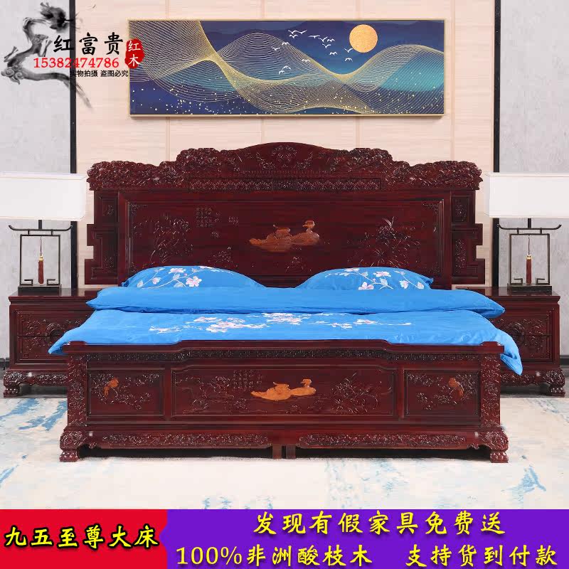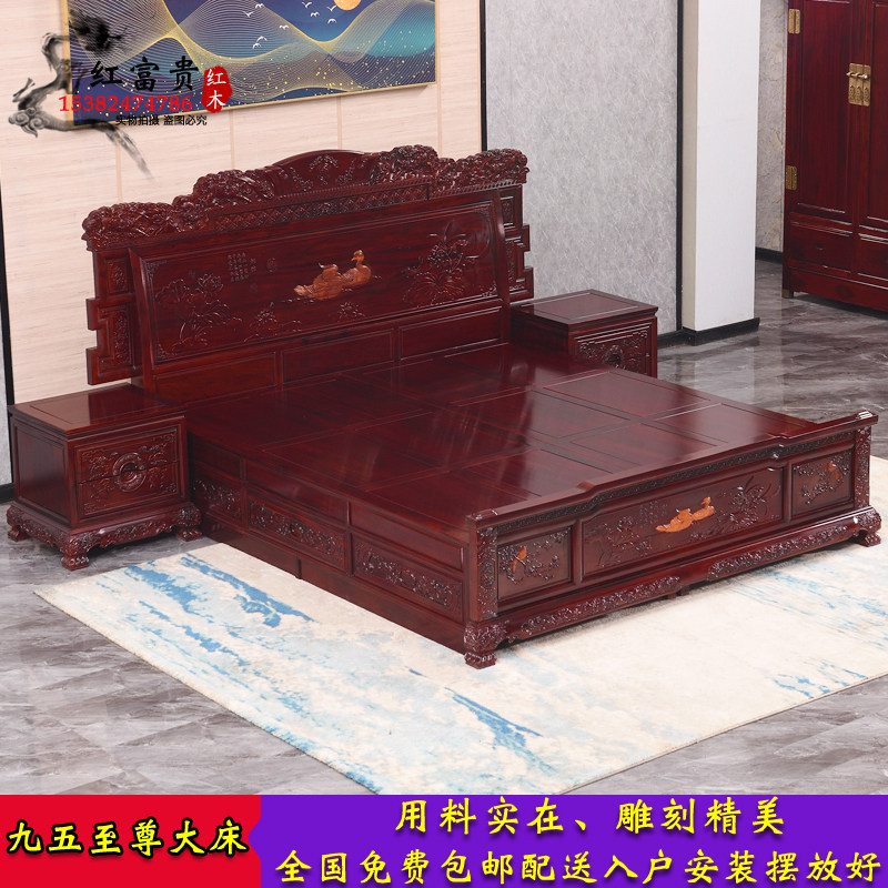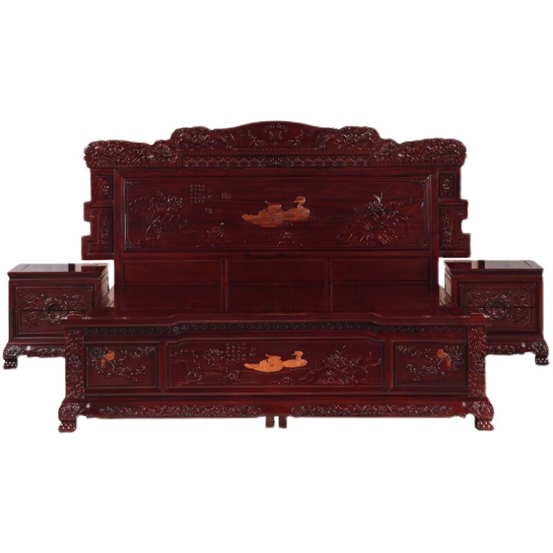 Redwood bed African rosewood 18 m double queen bed combination all solid wood luxury carved wedding bedroom furniture