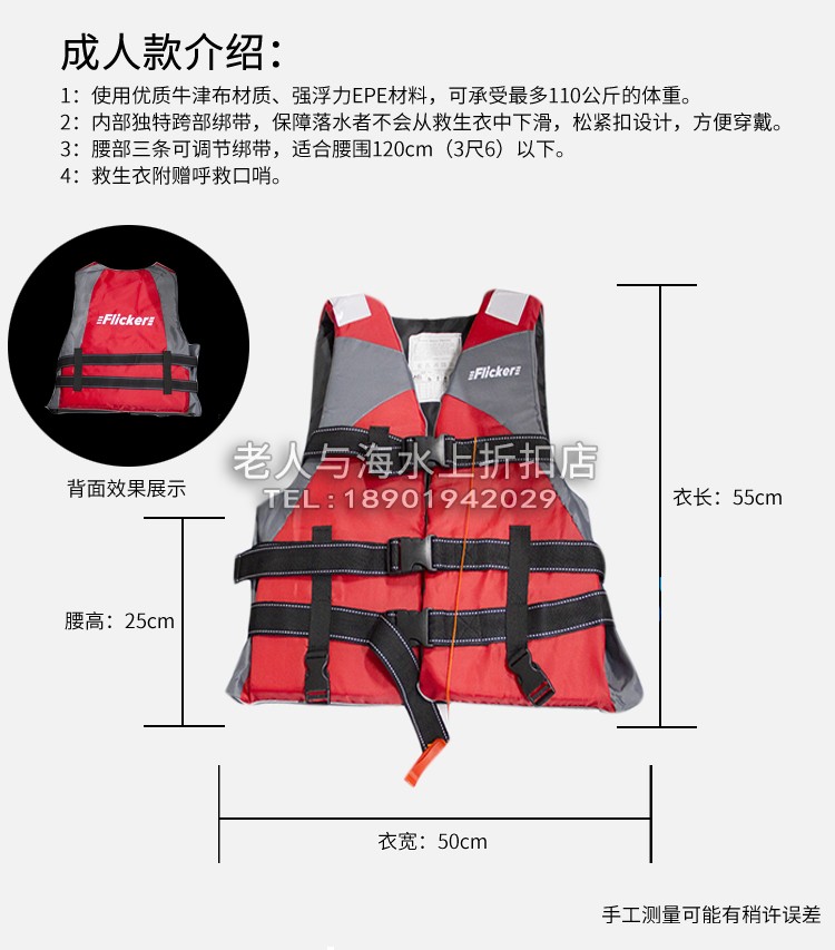 Flicker ordinary 7 5kg buoyancy boat life-saving floating suit drifting rubber boat kayak assault boat