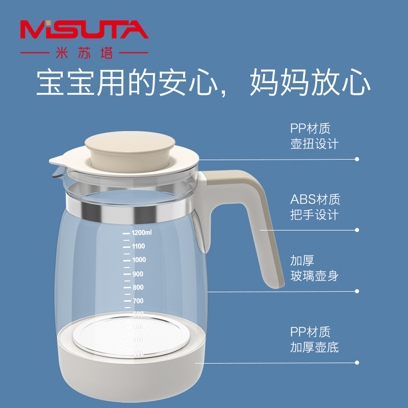 Misuta constant temperature milk regulator milk warmer milk warmer accessories full glass kettle milk maker single pot without base