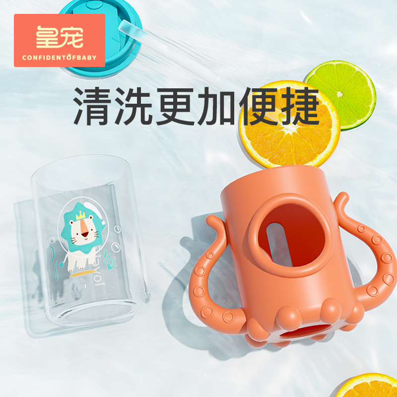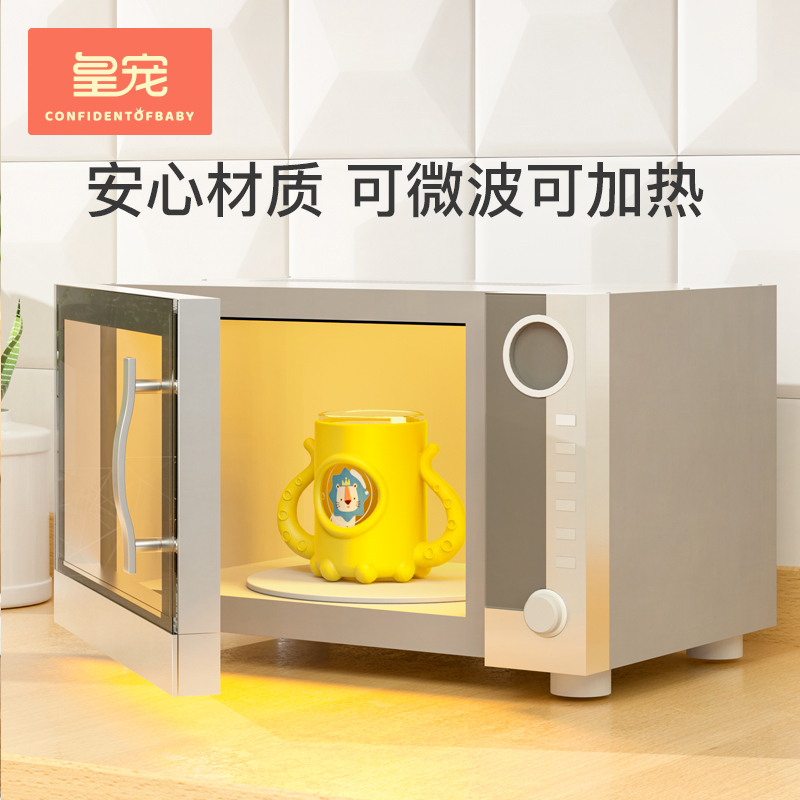 Royal pet children's water cup milk cup with scale glass bottle big baby drinking milk straw cup with handle straight drink cup