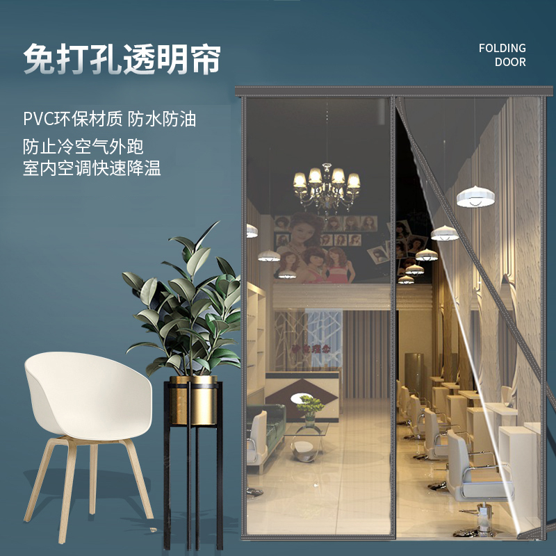 Air conditioning transparent door curtain windproof kitchen fumes windproof plastic partition curtain self-suction magnetic suction anti-mosquito anti-fly free punching