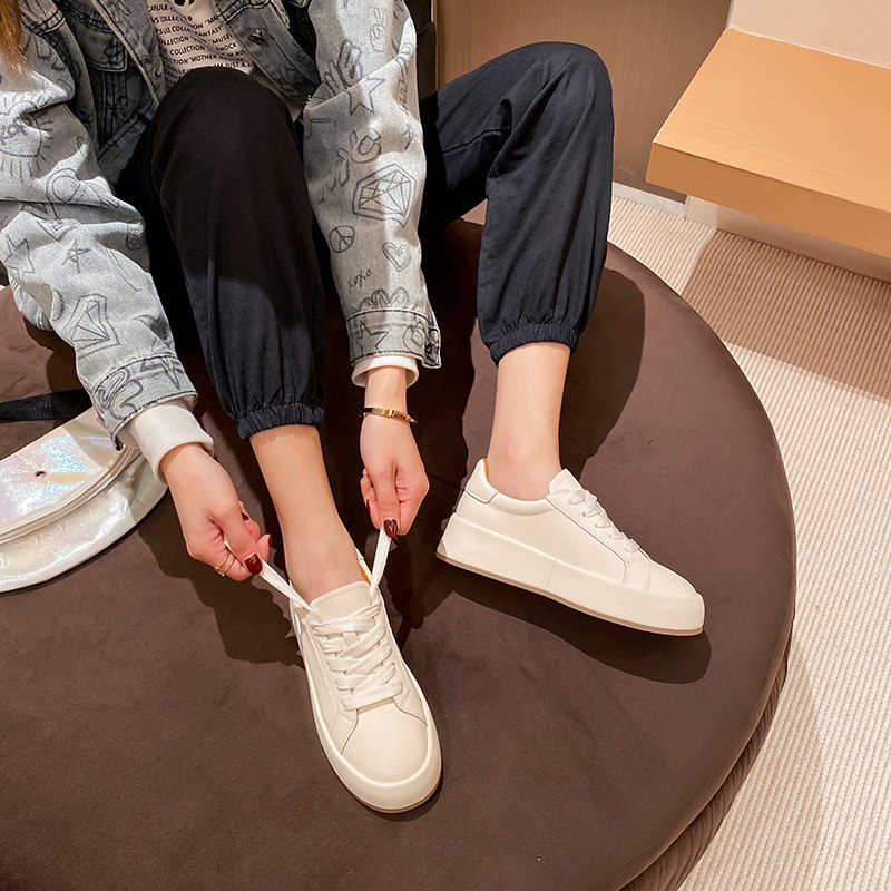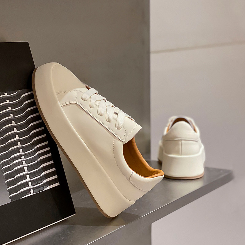 South Korea Boomer Petty White Shoes Women 2022 New Muffin Shoes 100 Hitch Bottom Inner Heightening Genuine Leather Casual Board Shoes Children
