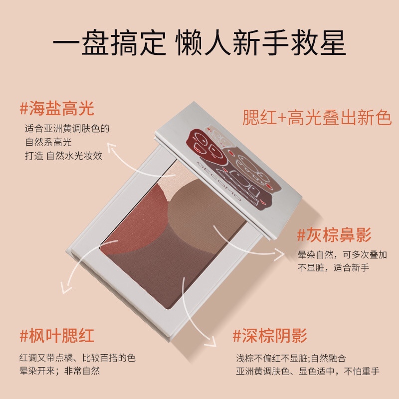 Gemon repair pan 4-color shadow high light blush nose and shadow side shadow 4-in-a-pan nude makeup new hands small V face