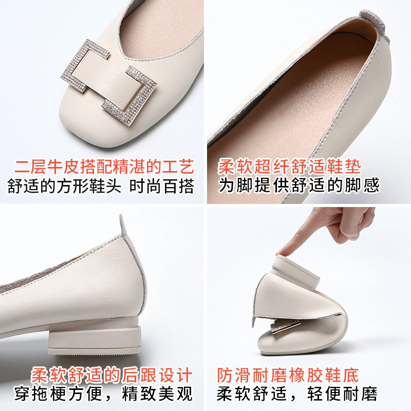 Low-heeled single shoes women's thick-heeled 2022 summer new shoes a pedal leather square toe grandma shoes rice white shoes