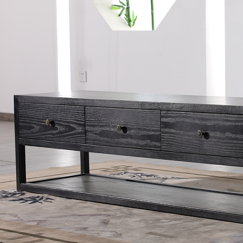 New Chinese style combination TV cabinet modern minimalist living room drawer cabinet homestay Chinese style all solid wood wall cabinet decorative cabinet