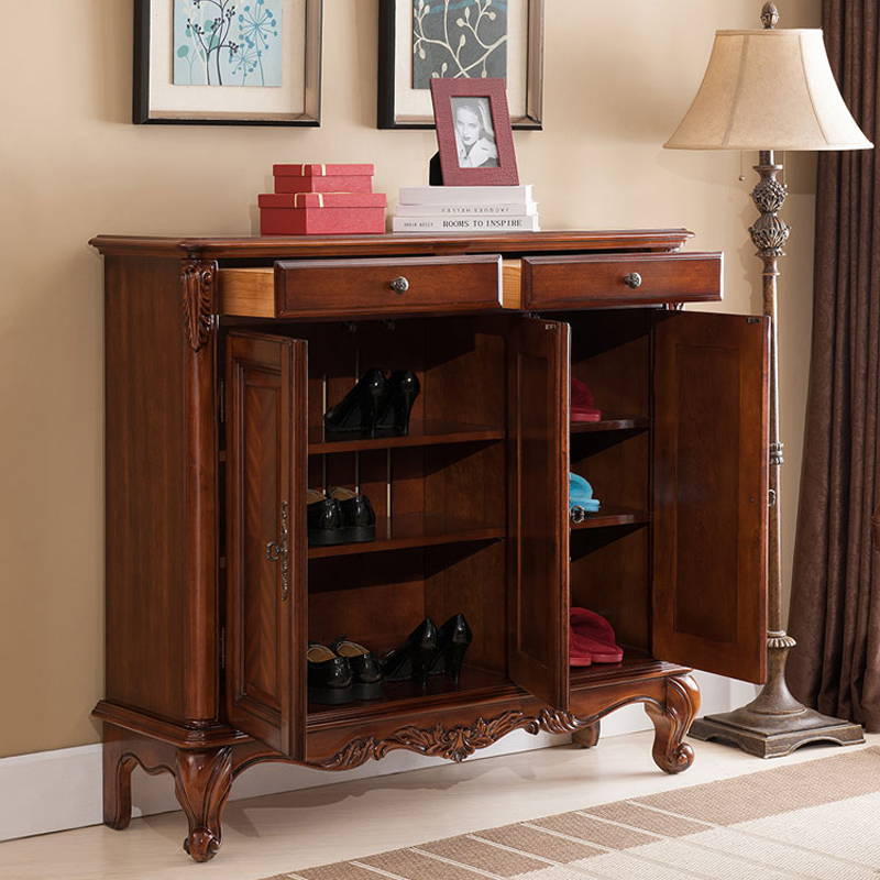 American Countryside Solid Wood Shoes Cabinet Eurostyle Three Doors Large Capacity Pair Open Door Containing Cabinet Upscale Containing Cabinet Door Hall Shoes Cabinet