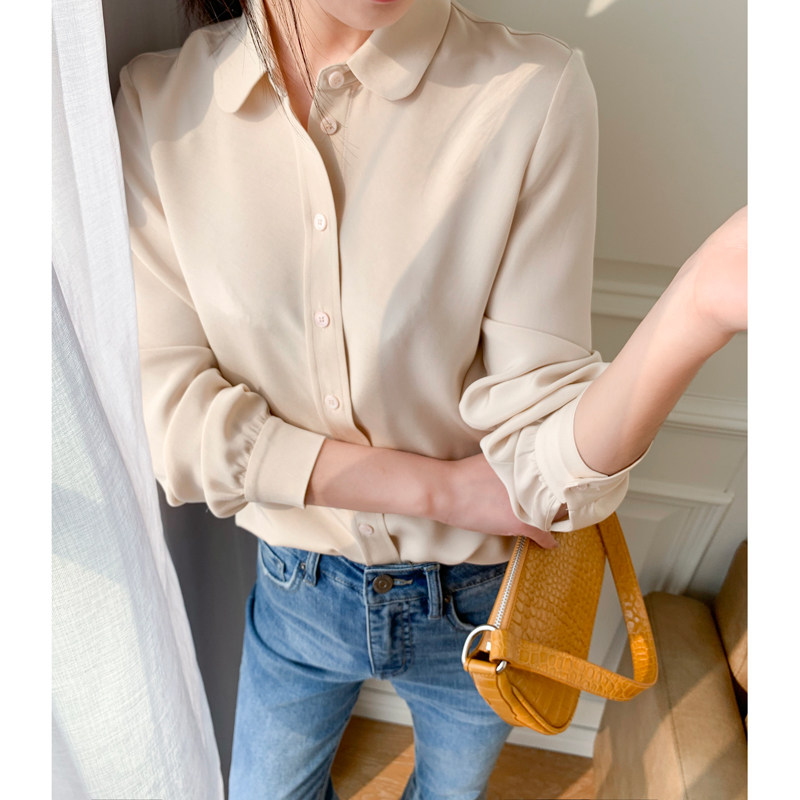 Ma's Jiamin 30 Mmi Heavy Genuine Silk Shirt Woman Long Sleeve Delicate Little Round Collar Blouse