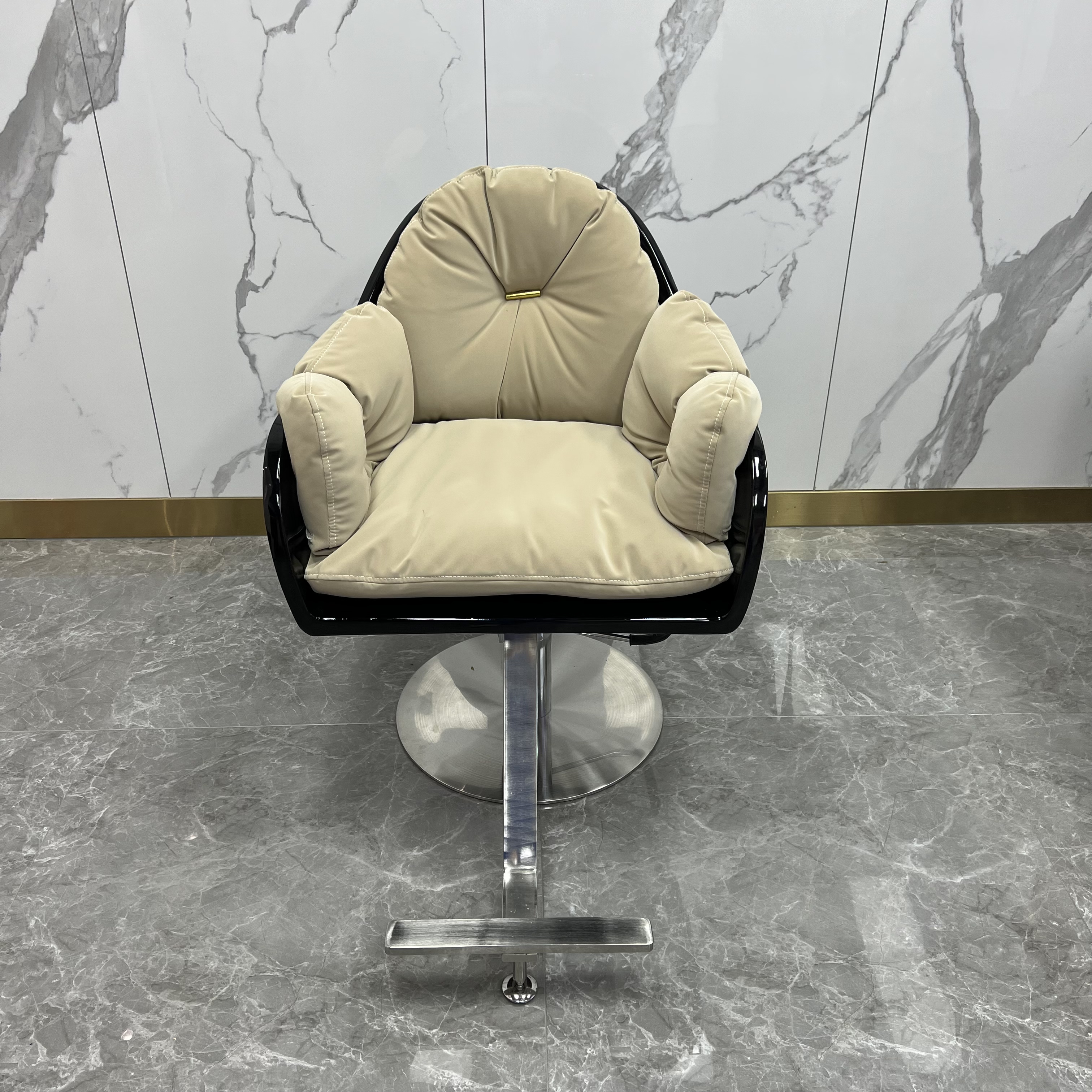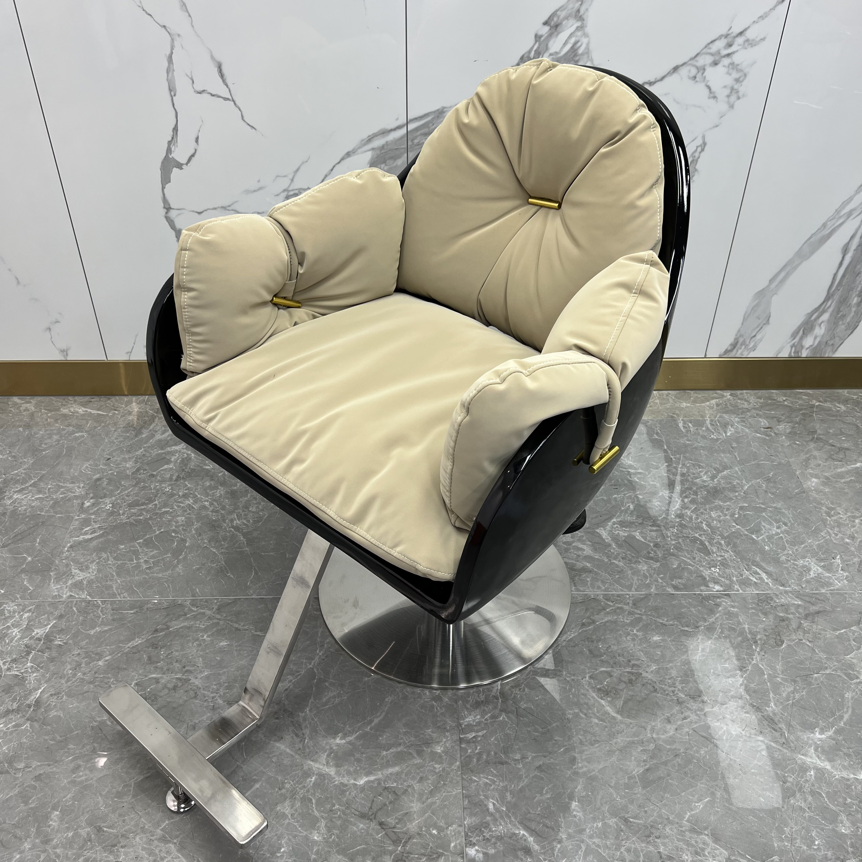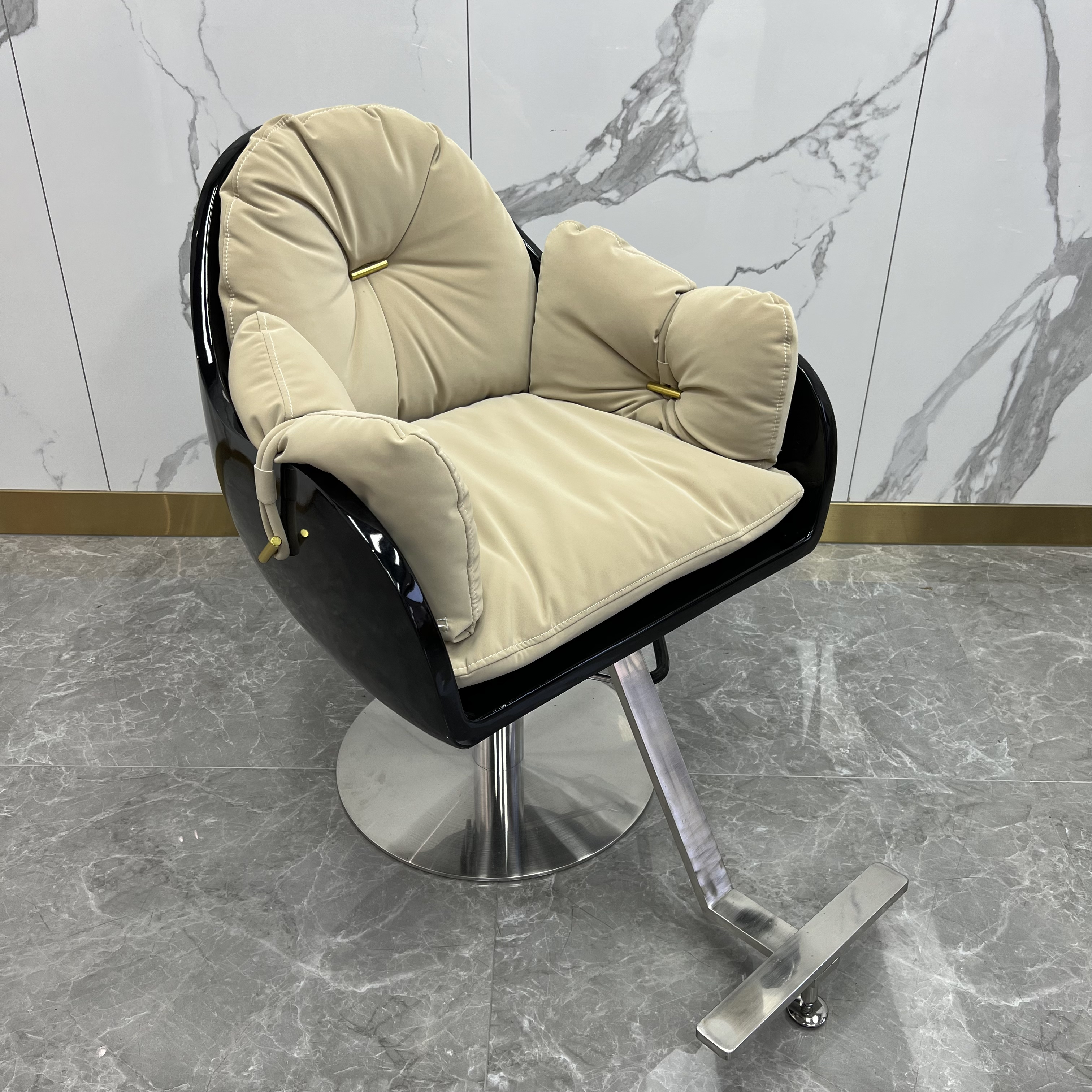 A type of fiberglass hairdressing chair - electroplating chassis A type of fiberglass hairdressing chair - stainless steel chassis A type of fiberglass hairdressing chair with high back cushion B type of fiberglass hairdressing chair - white protective shell B type of glass