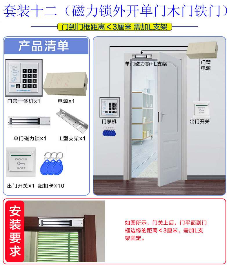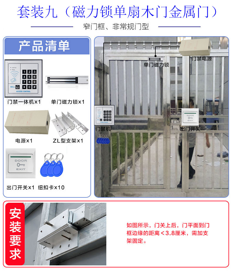 Electronic access control system set password card swiping all-in-one machine magnetic lock fire door magnetic suction lock glass ferroelectric mortise lock