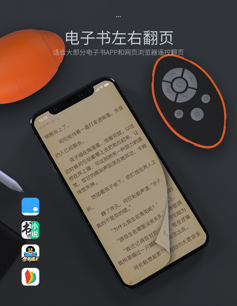 Mobile phone universal bluetooth remote control photo slide short video like novel automatic page turning controller artifact wireless