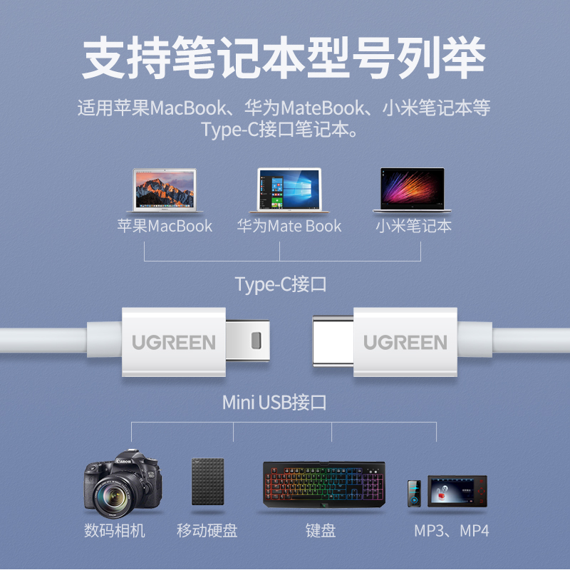 Green Link type-c to miniUSB cable hand-painted keyboard cable Apple Huawei Xiaomi notebook Canon monocular