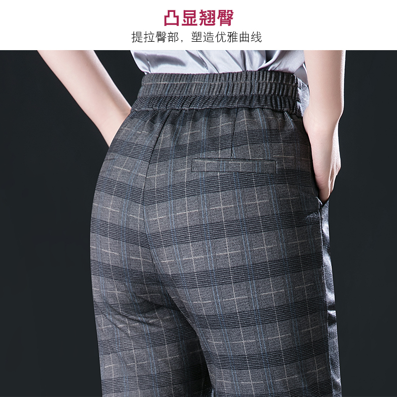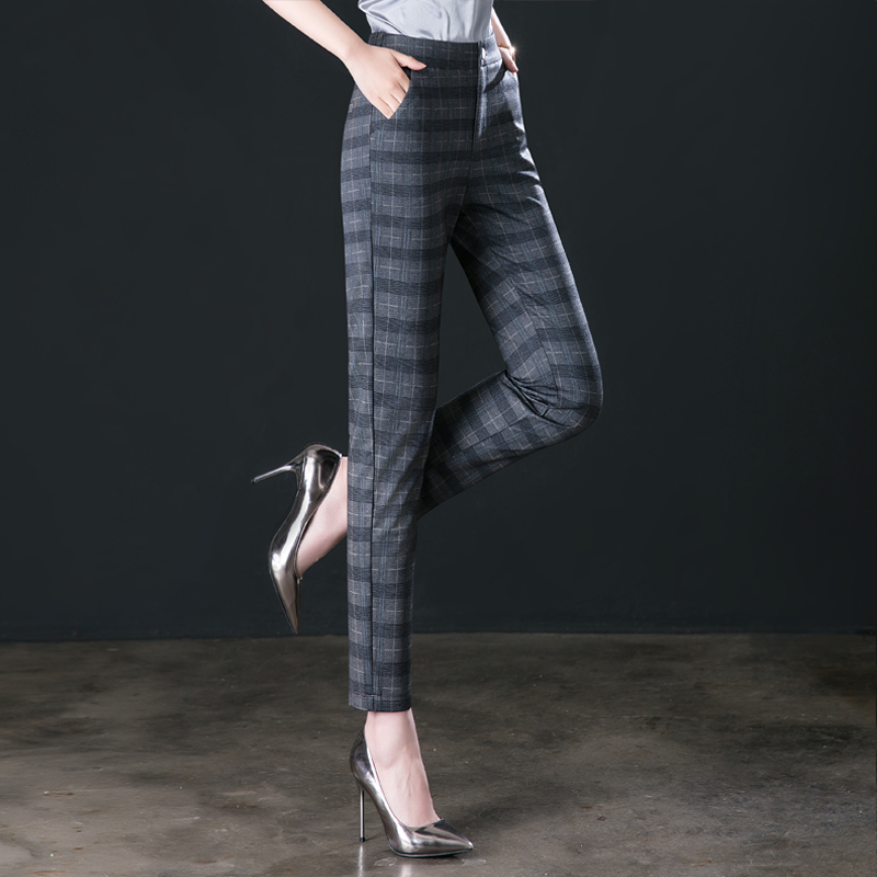 2021 Spring New 90% Pants Woman Spring Autumn Checkered Pants High Waist Elastic Narrow Leggings Pants 9 Sub Pants Small Subwomen Pants