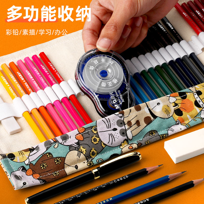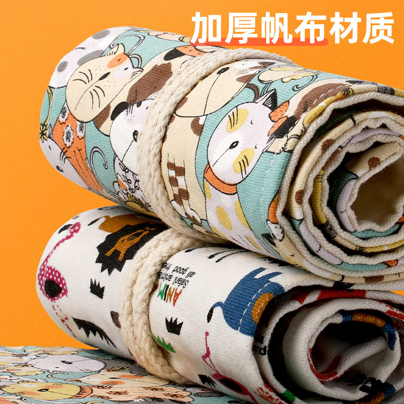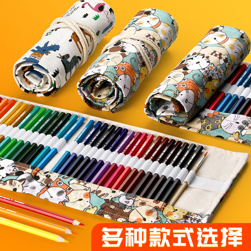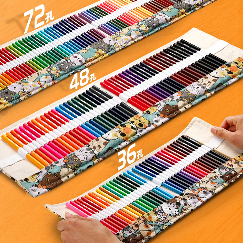 Pen Curtain Roll Style Pen Bag Canvas Large Capacity Girl Junior High School Cute 48 Holes Color Pencil Sketch Pencil Fine Art Drawing Special 36 Color Containing Multifunction 72 Holes Male Pen Curtain Roll Pen Bag Canvas Brief