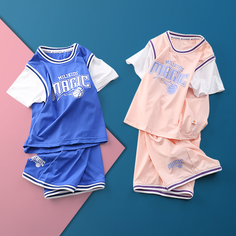 Children's Speed Dry Sports Suit Girls Summer Clothes Boy Foreign Pie Slim Summer Basketball Suit Girl Thin Clothes