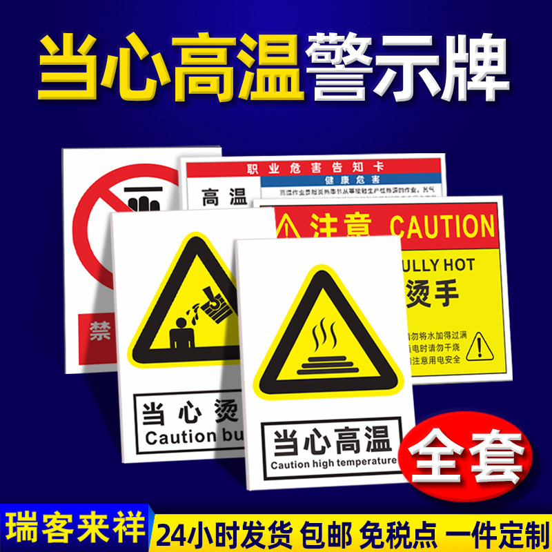 Beware of high temperature signs Pay attention to high temperature careful burns Hot hands Safety warning signs High temperature hazards Do not touch warning signs High temperature burns Occupational Hazards Notification Card Customization