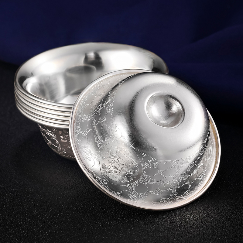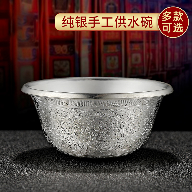 s990 sterling silver water supply bowl for Buddha s999 silver water cup Buddha front water supply cup Handmade eight auspicious water supply cup