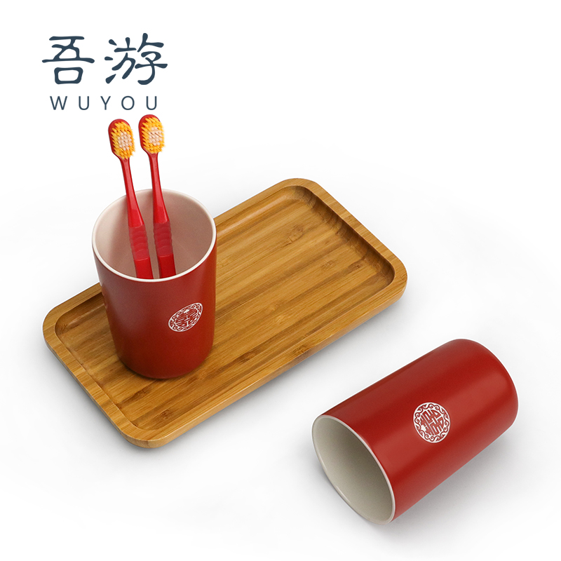 Wuyou wedding mouthwash cup household simple toothbrush cup creative wash cup couple a pair of dowry toothbrush set