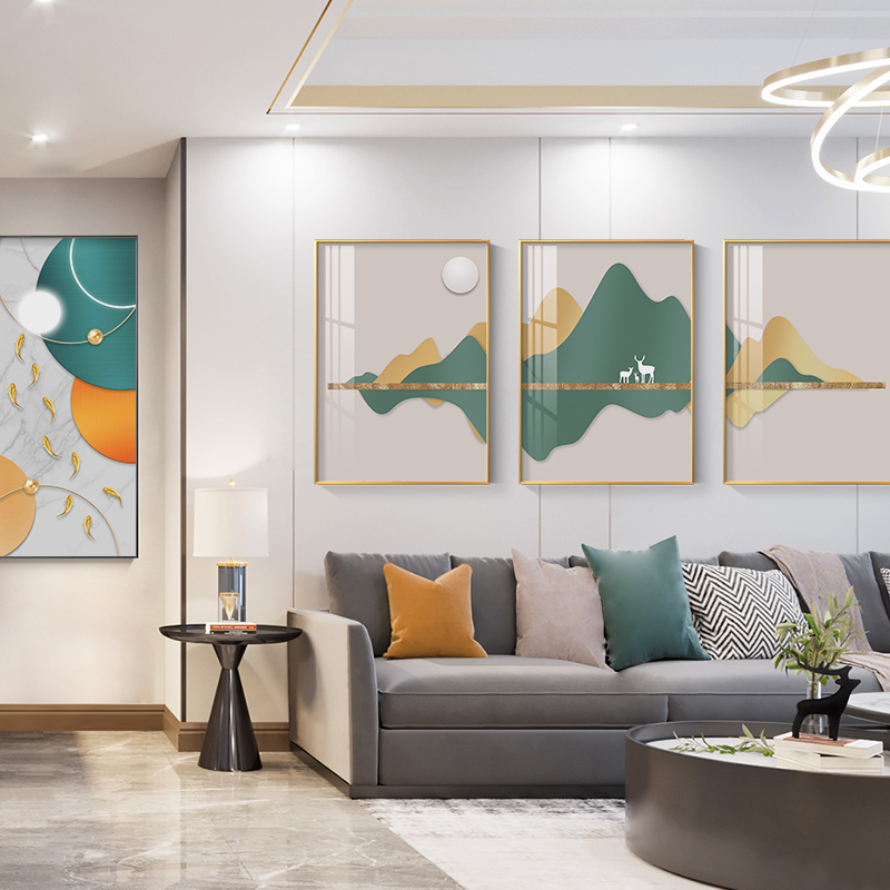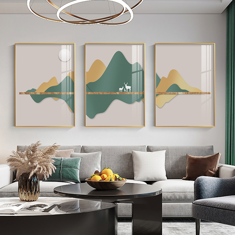 Nordic light luxury living room decorative painting sofa background wall painting modern minimalist triple combination crystal porcelain painting creative mural