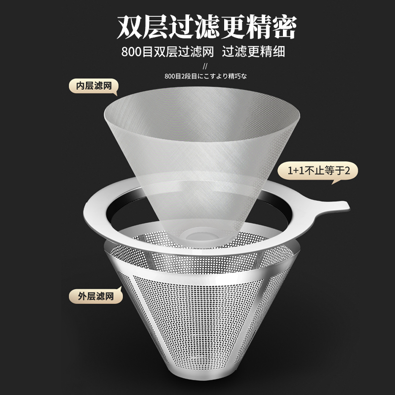 Basic coffee funnel (300 mesh for 1-2 people) filter is just right Delicate coffee funnel (800 mesh for 1-2 people) filter more finely Delicate coffee funnel