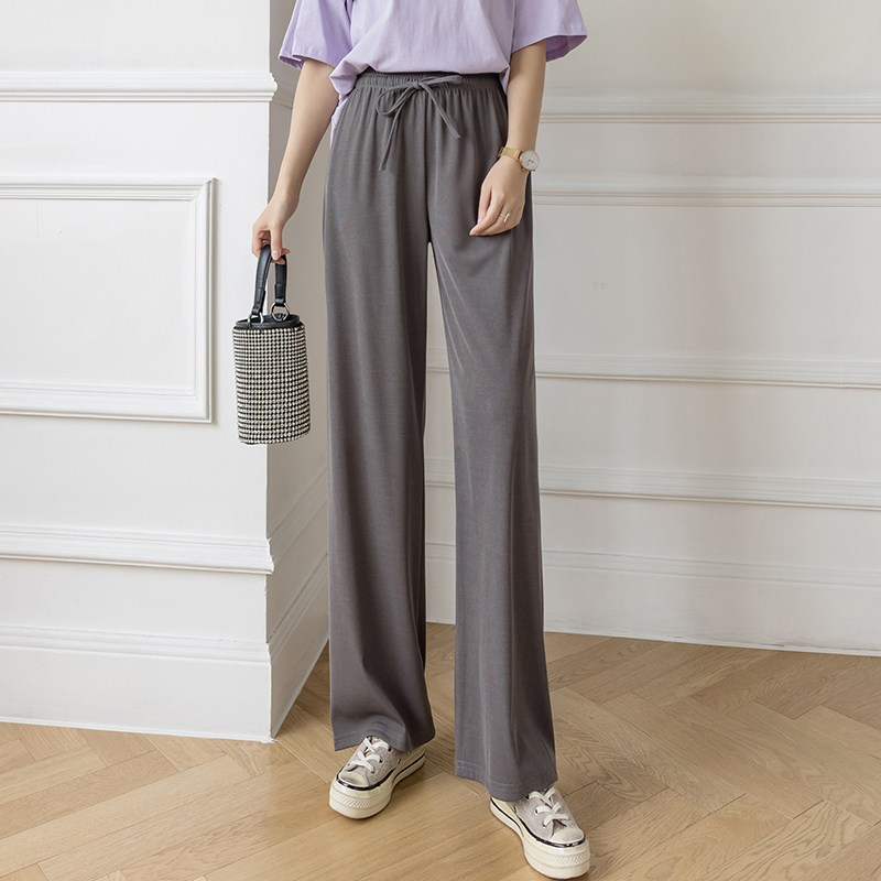 Ice Silk Broadlegged Pants Woman High Waist Pituality 2021 New Thin Section Long Pants Spring Summer High Waist Loose Straight Drum Pants