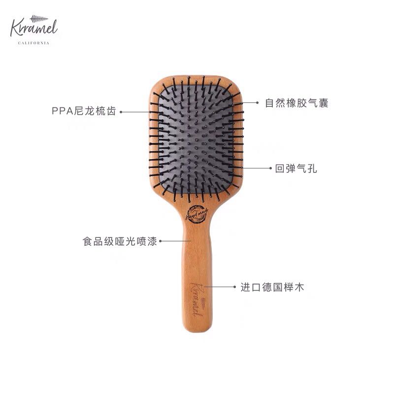 Hot sell krramel bare beech wood comb gift box gift air cushion massage comb American air bag comb antistatic