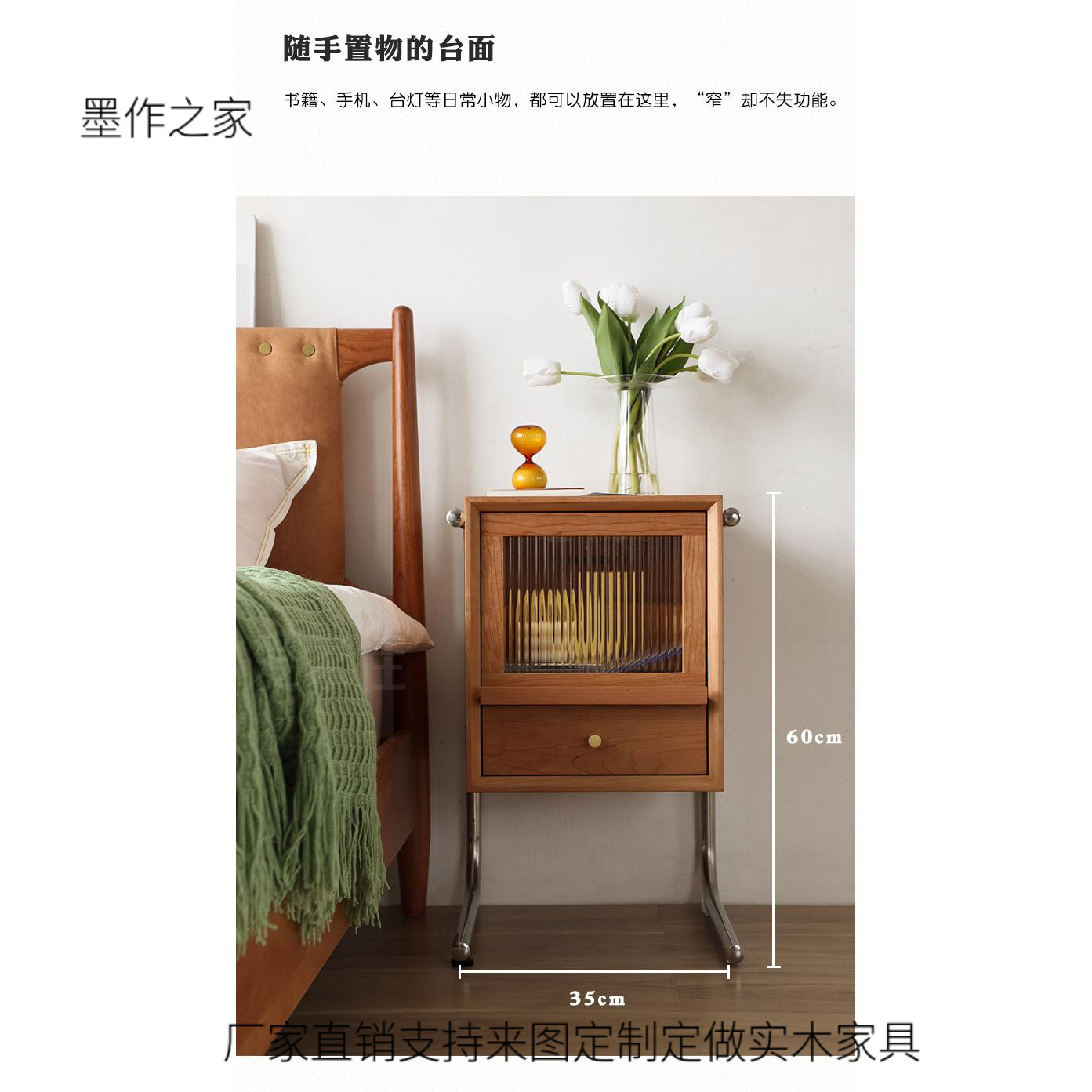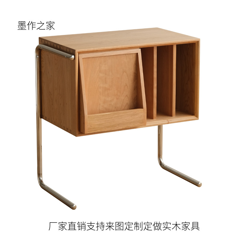 Nordic solid wood bookcase suspension storage cabinet ins magazine cabinet Japanese multi-functional storage bookshelf sofa side cabinet
