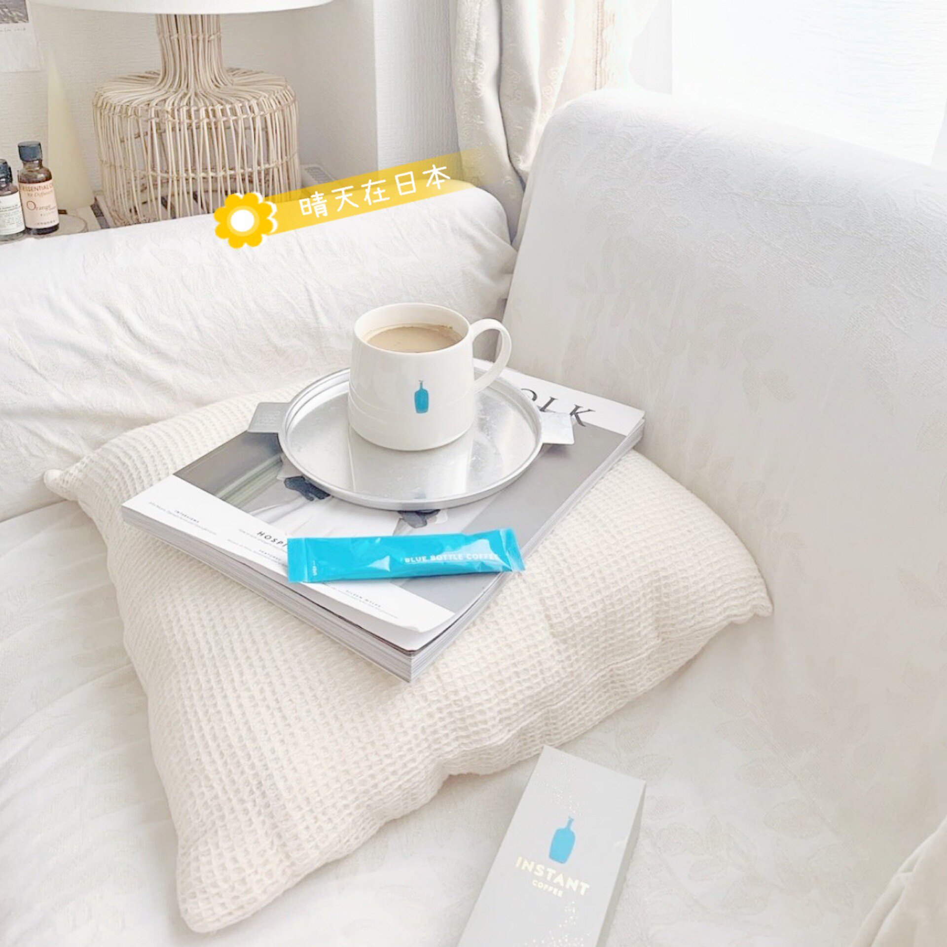 Spot Japan Gifu Prefecture production Blue Bottole Blue Bottle popularity Ceramic Mark Cup clear White River 340ml
