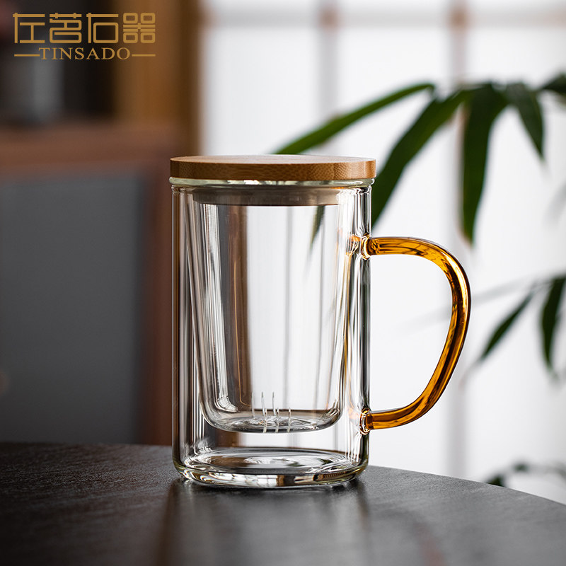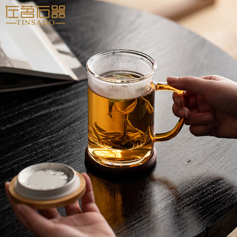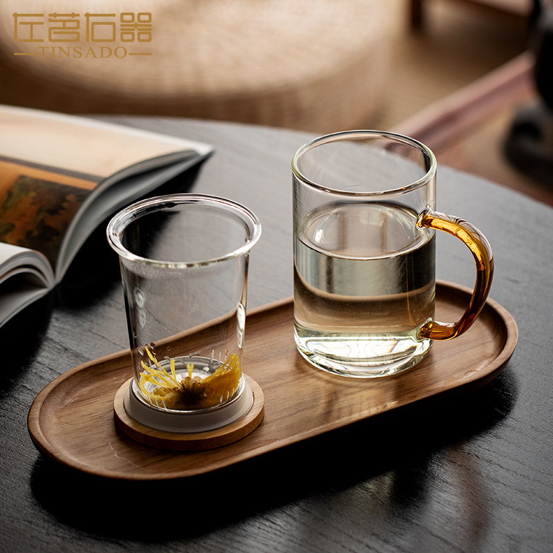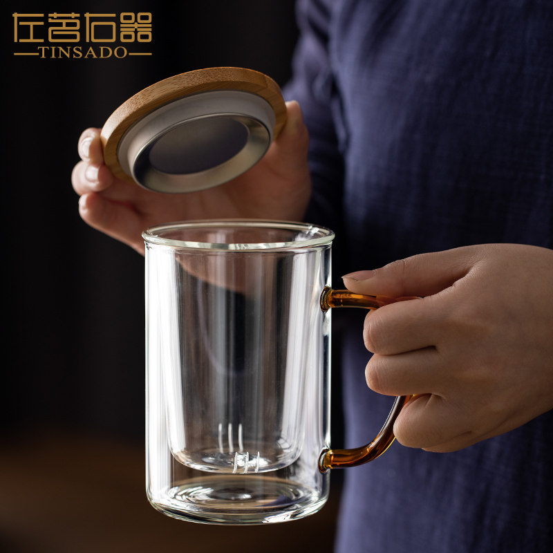 Left Tea Right Instrumental Thickening Glass Tea Cup Green Tea Personal Special Cup Home Heat Resistant Tea Water Separation Men's Water Cup