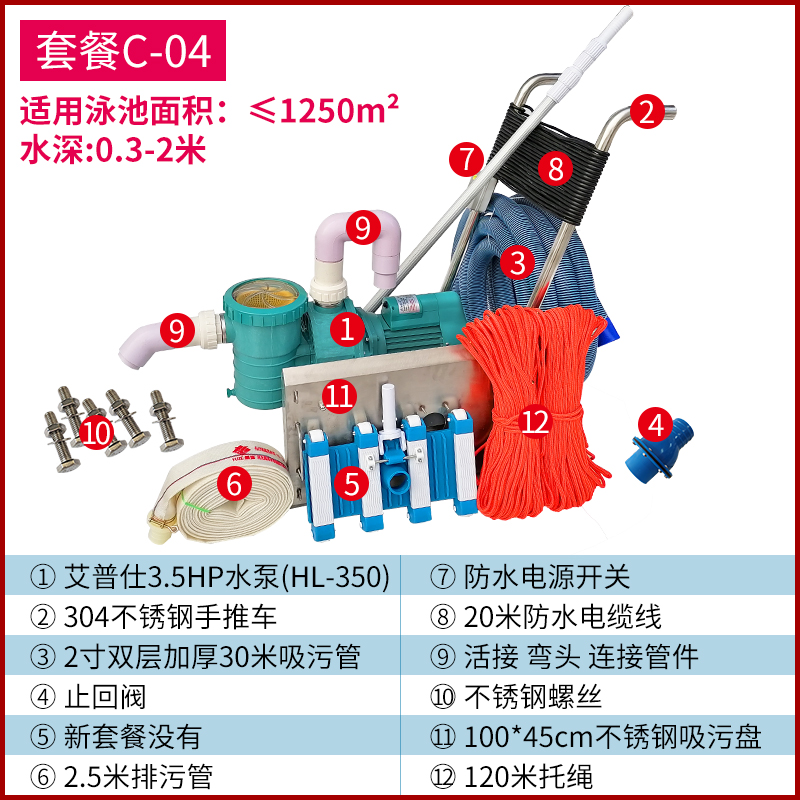 Swimming pool underwater vacuum cleaner manual fish pond sewage suction machine fish pond desilting machine bottom suction sewage pump equipment