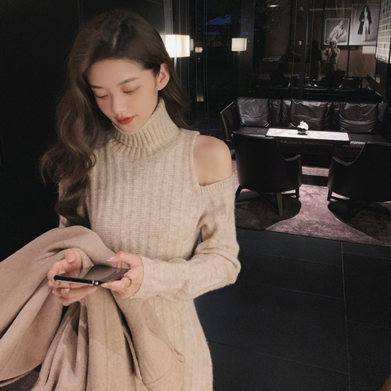 sandro asw French style famous hime wool dress women 2022 fall new small balsamic wind knit bottom skirt