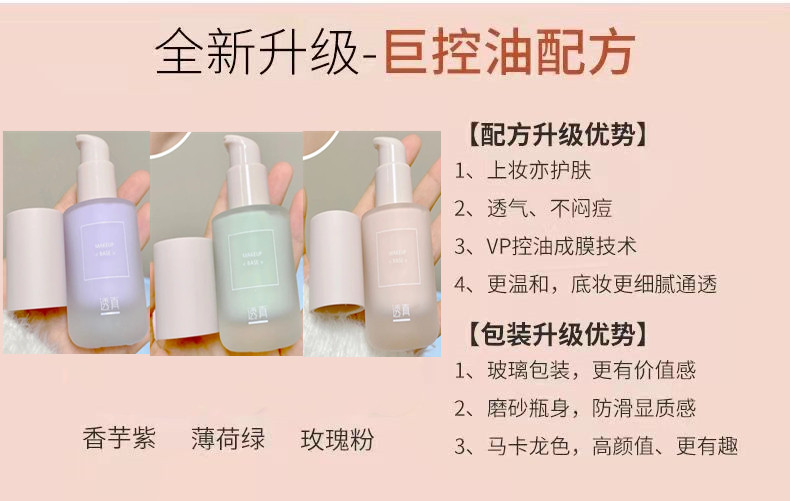 Through Real Isolation Cream Vegan Face Cream Moisturizing Control Oil Persistent Invisible Hair Pore Makeup Front Milk Beating Bottom Moisturizing Student Women