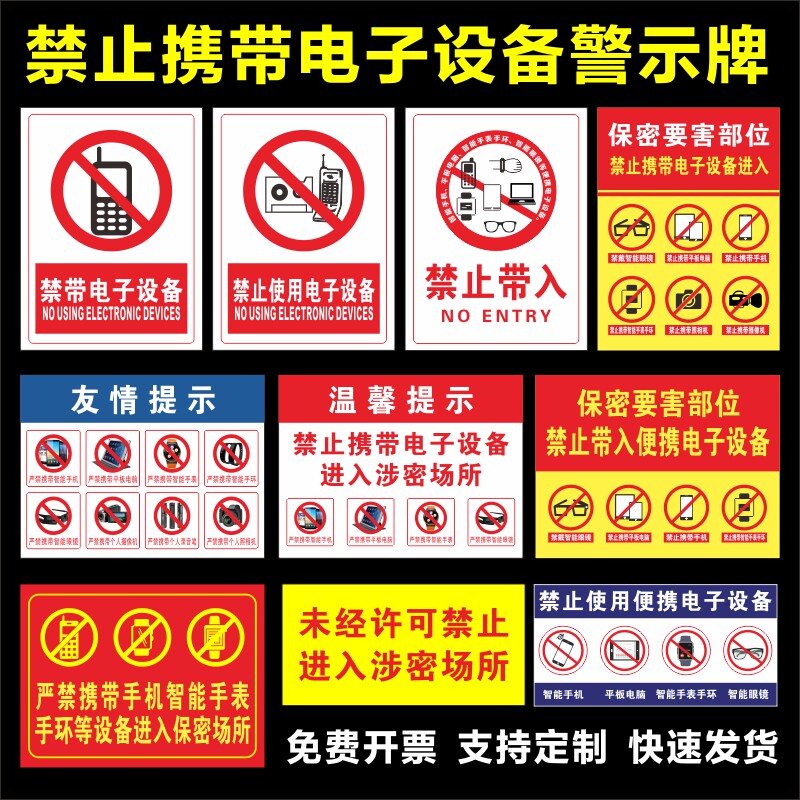 Forbidden to carry electronic devices into the covered premises ID warning signs ban the use of camera or videotape equipment Reminder Signs Secret to Harm Parts Cozy Reminder Sign Stickers