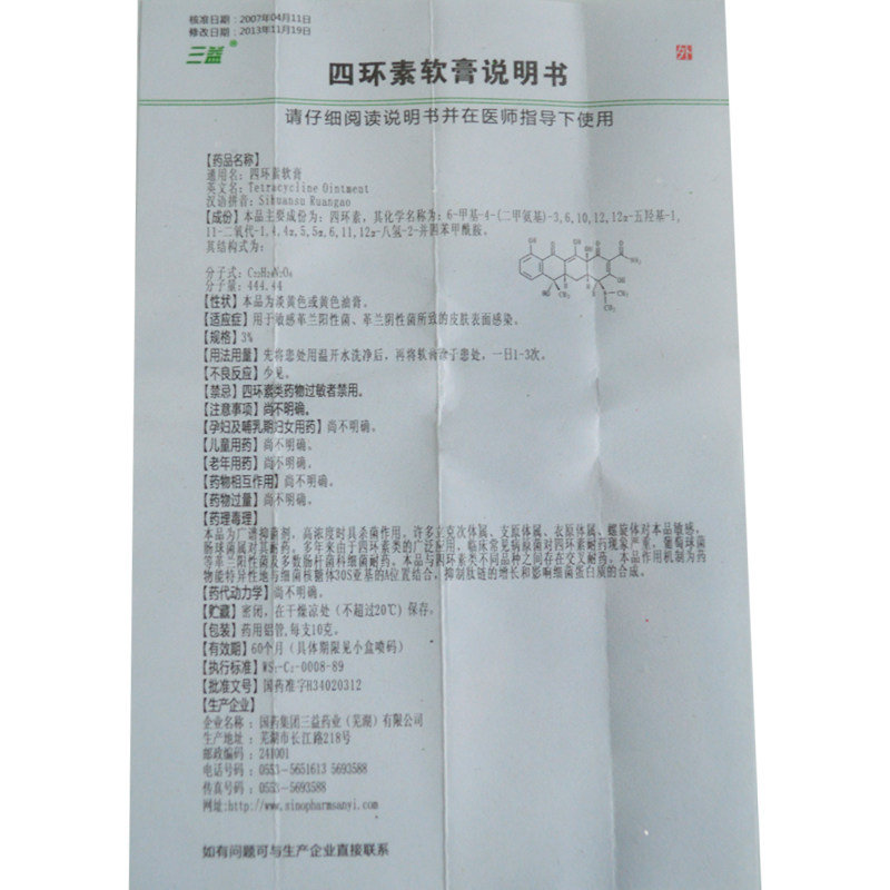 Sanyi Tetracycline Ointment 3%*10g*1 box, skin surface infection caused by sensitive gram bacteria