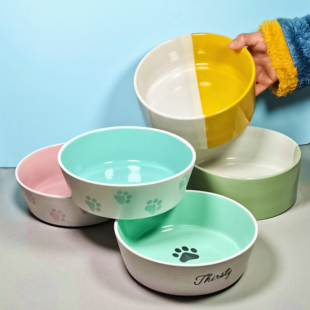 Large British Tail Single Microflawless Ceramic Dog Basin Cat Bowl Large Capacity Large Dog Food Basin Drink Water Bowl Dog Plus High Neck Protection