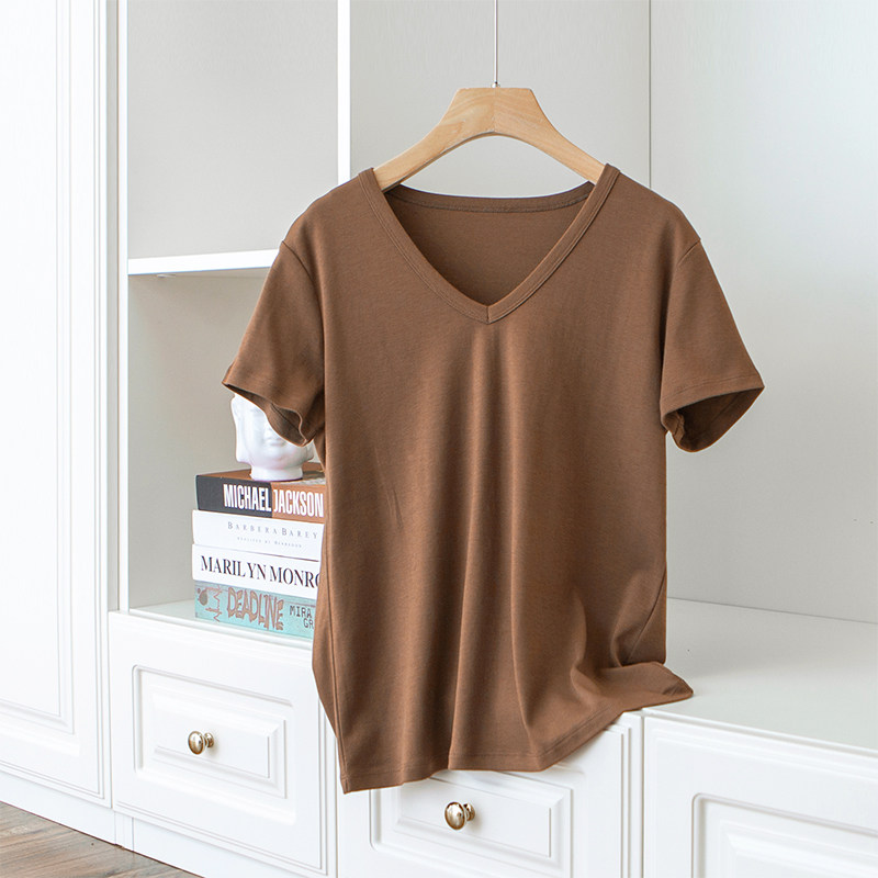 Good fabric fine shape of the cotton simple base round collar V - collar head short - sleeve T - shirt 22 summer