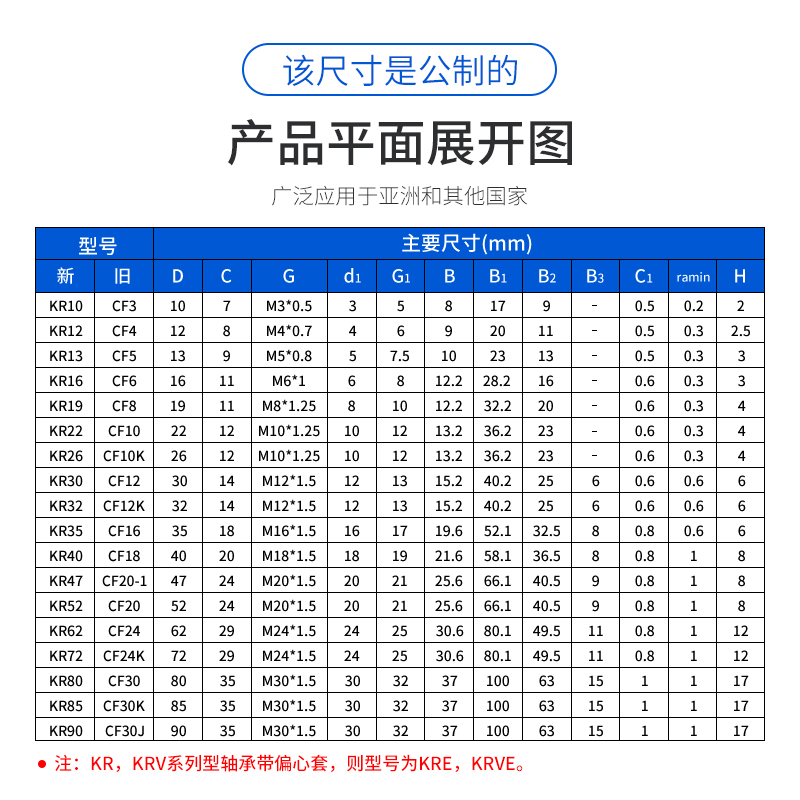 Bolt type cam bearing follower KR CF3 4 5 6 8 10 12 16 18 20 24 30 needle roller