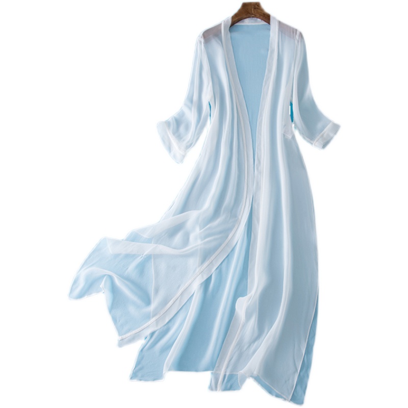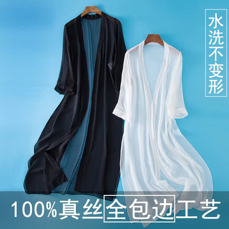 Silk outer cardigan Large size shawl 100%Mulberry silk medium and long version with skirt sunscreen coat Women's thin coat