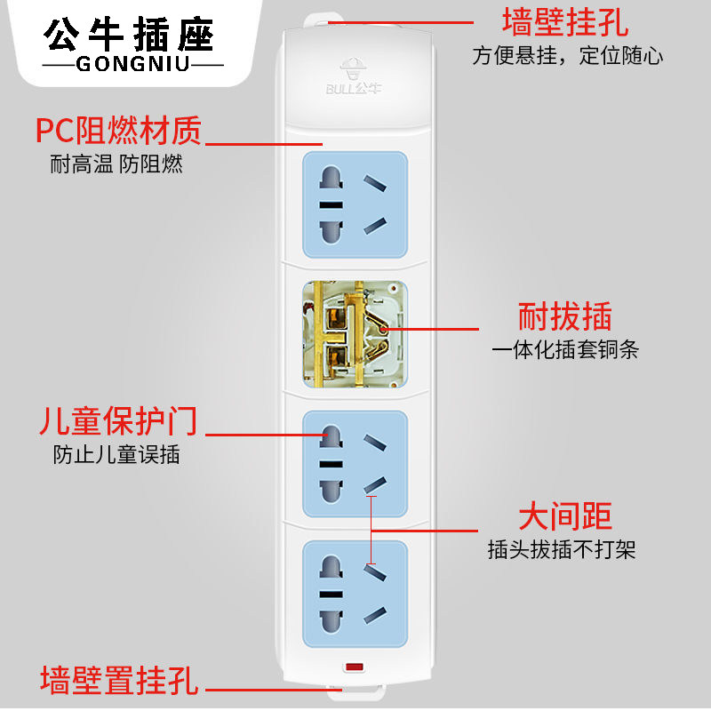 Bull socket without line multi-function extension cord power wiring board porous household extension cord converter socket