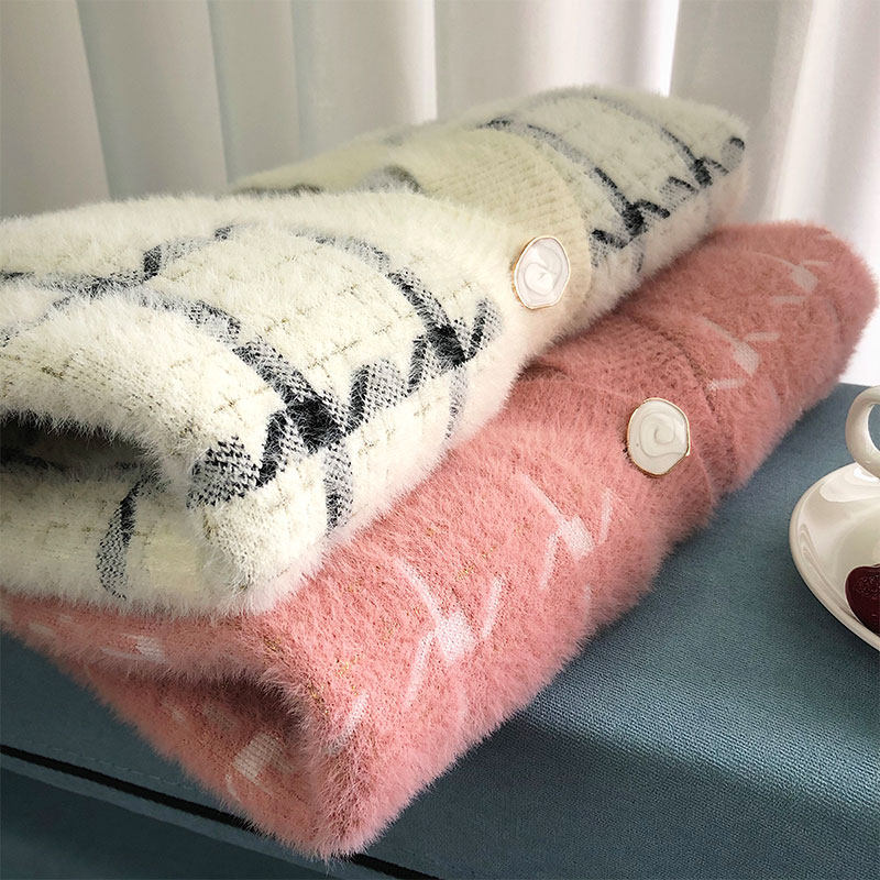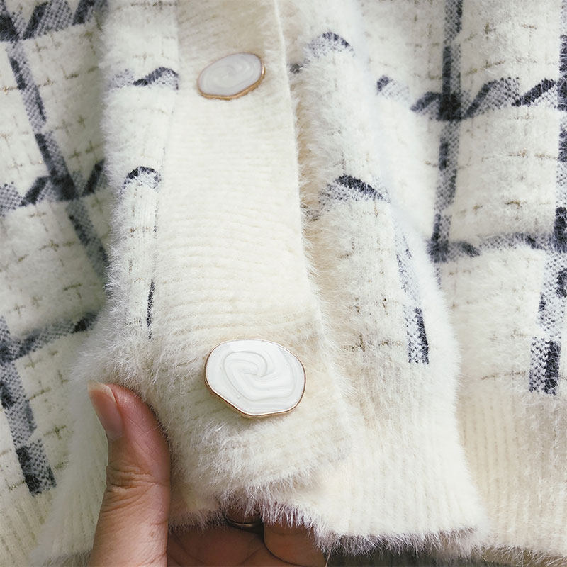 Korean sweater coat women's cardigan autumn and winter New White loose thickened lazy Korean Plaid knitted long sleeve