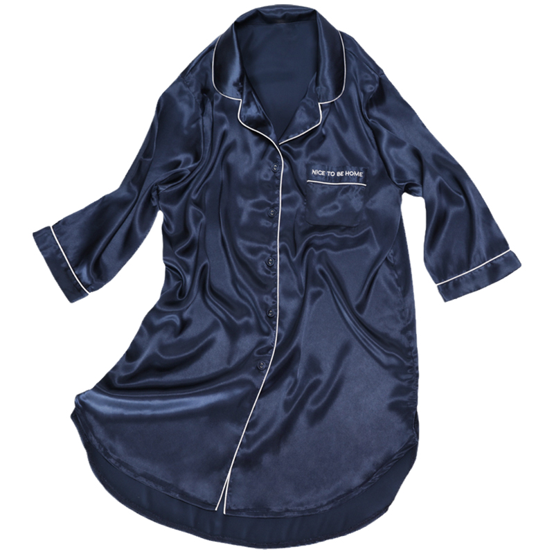 Pajamas senior sense female Ice Silk thin sexy Net red explosive 2021 shirt nightgown seven sleeves silk home wear