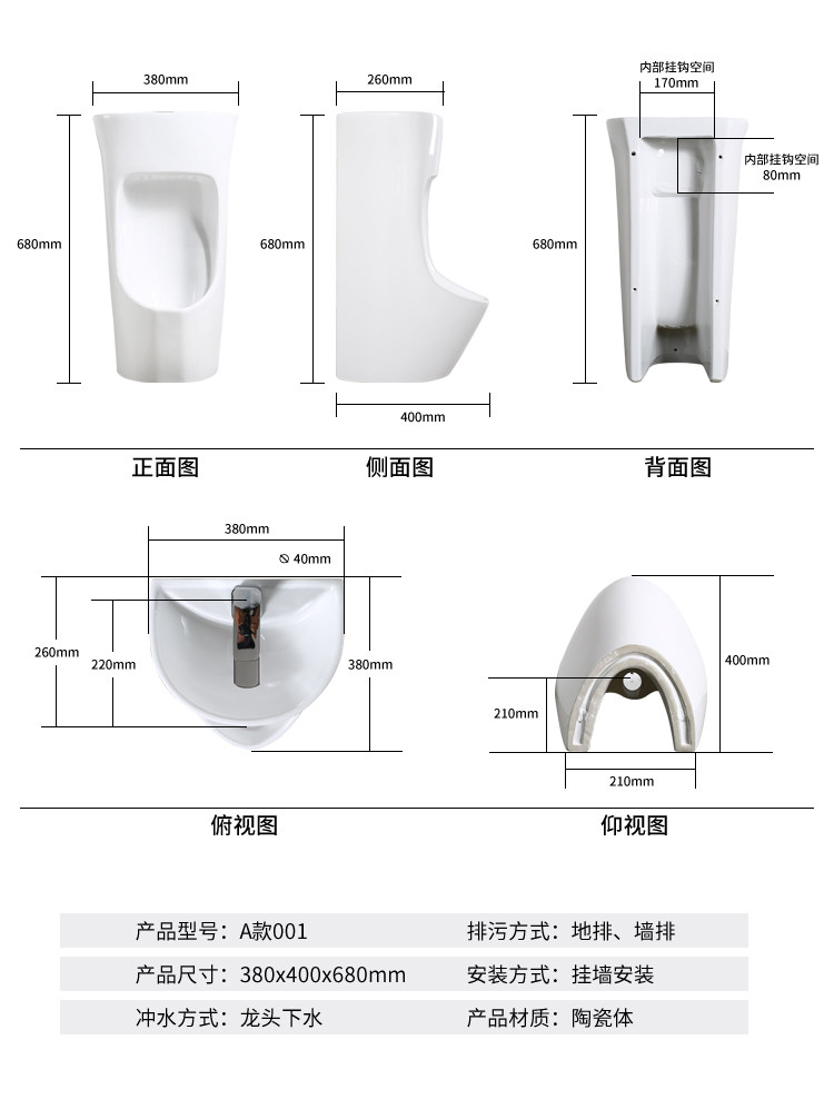 Type A urinal (without faucet) Type A urinal Square pull-out faucet Type A urinal with double outlet pull-out faucet Type B urinal (without faucet) Type B urinal Square pull-out faucet B
