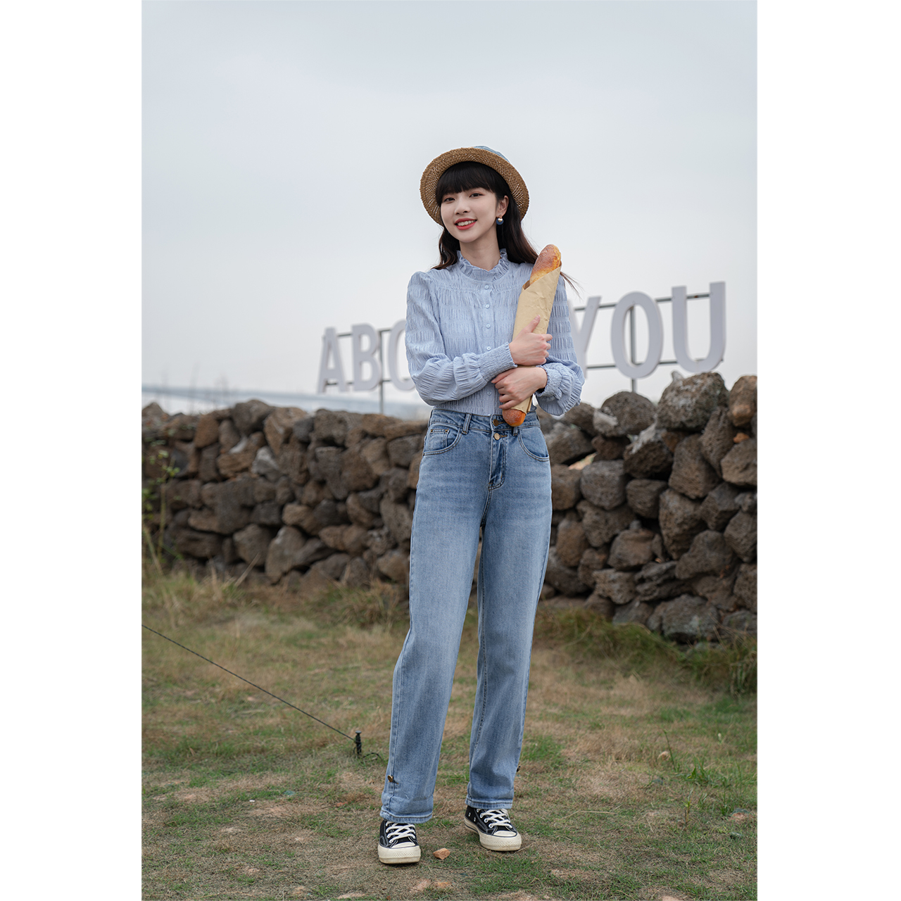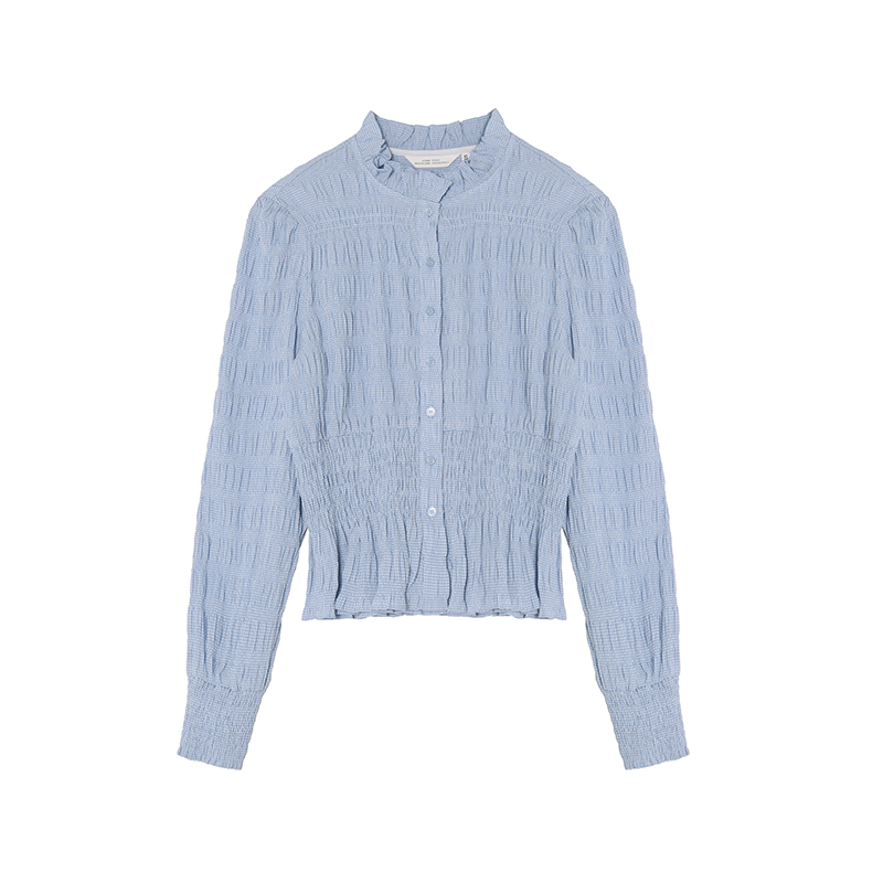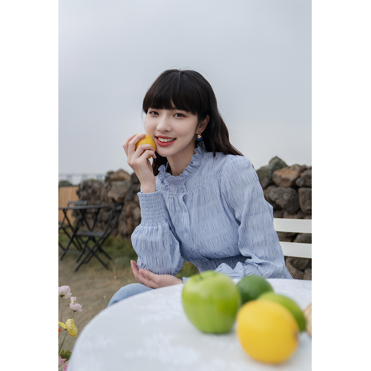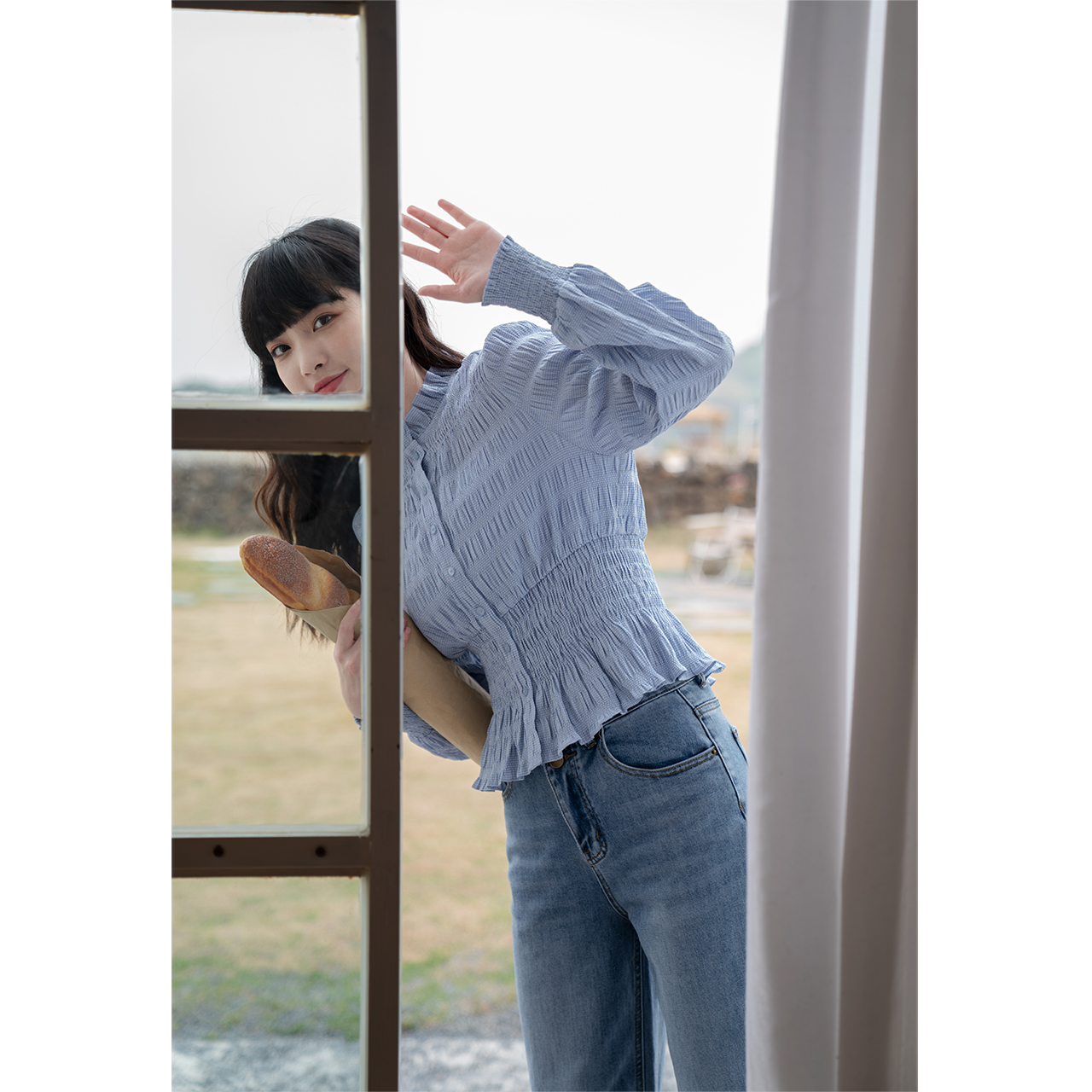 Deer South Blue Shirt Woman New 2022 Spring Design Sensation Small Crowdport Taste Vintage Fold Casual Blouse