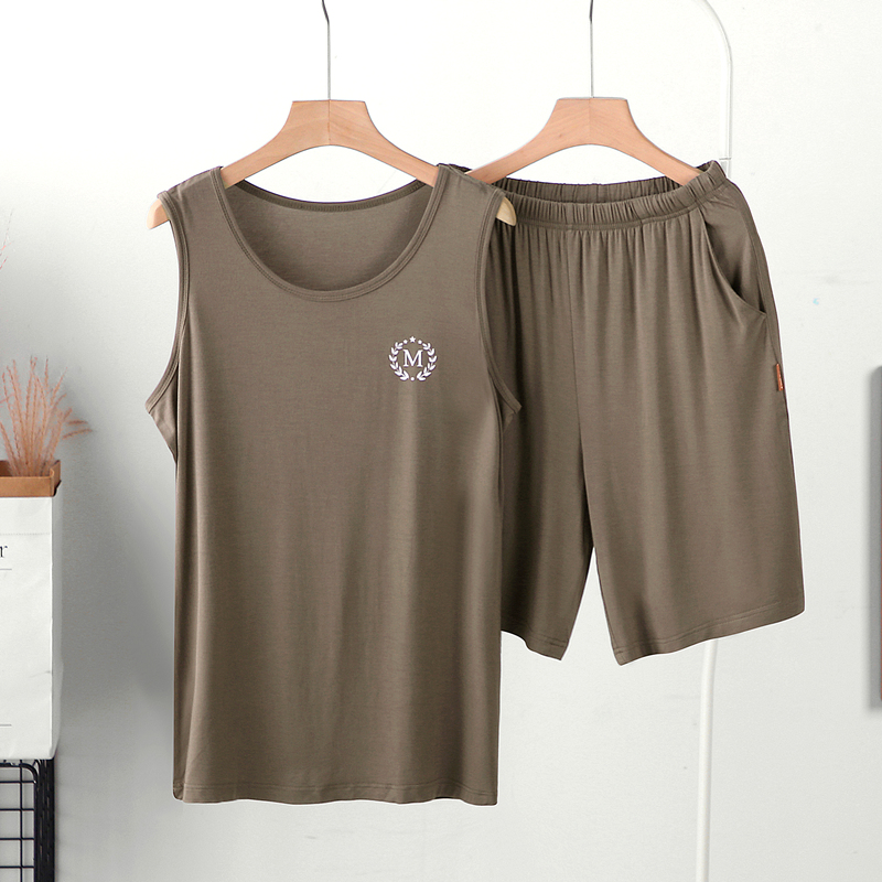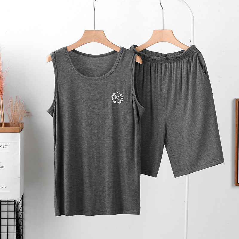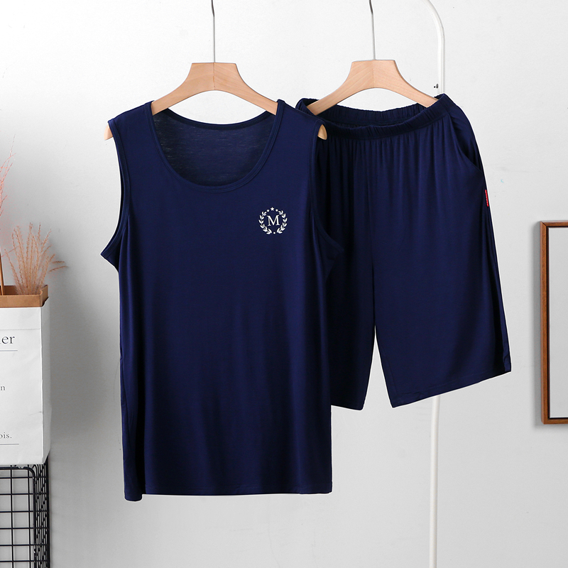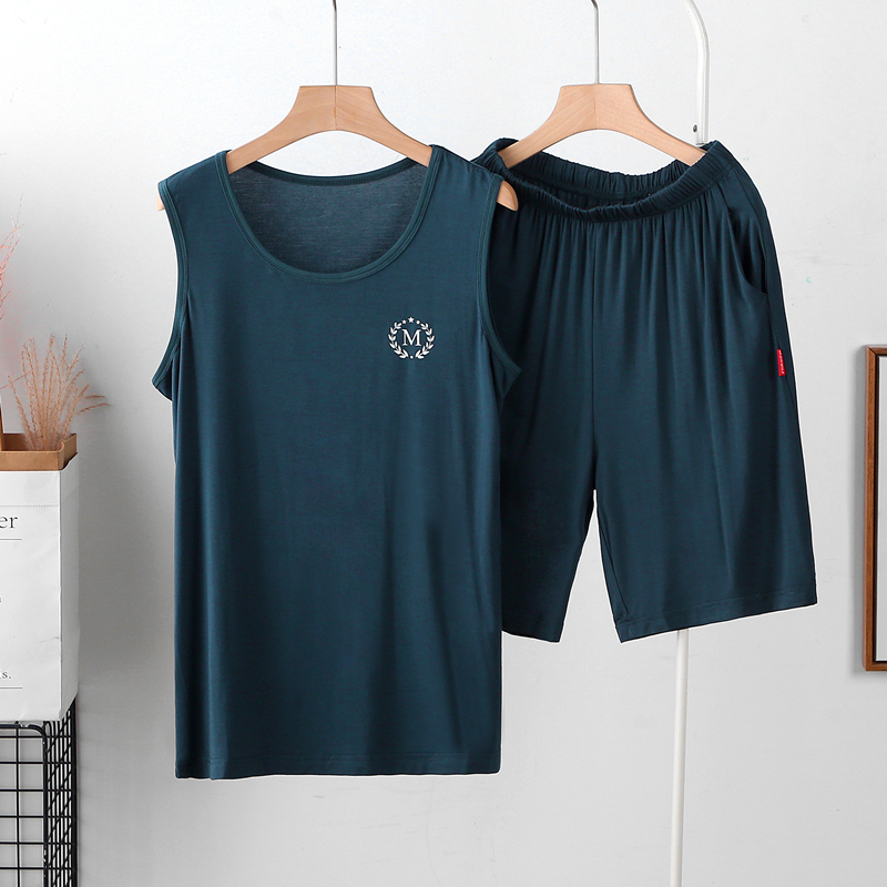 Men's sleepwear Summer thin Modale casual suit Large size Loose Vest Shorts Round Collar Sleeveless
