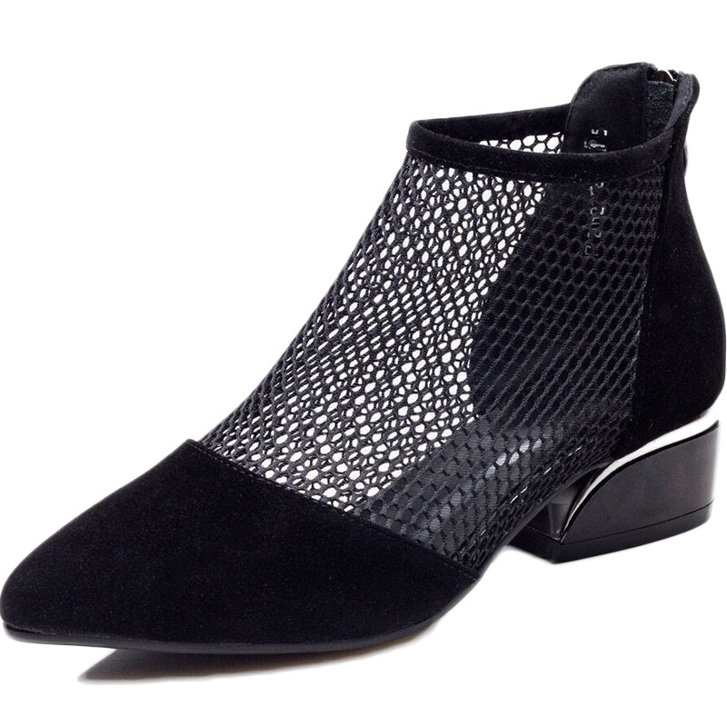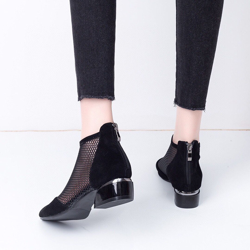 Spring Summer Nets Boots Woman 2022 New Cool Boots Low Heel Hollowed-out Boots Genuine Leather Pointed Women Shoes Mesh Yarn Roma Sandals