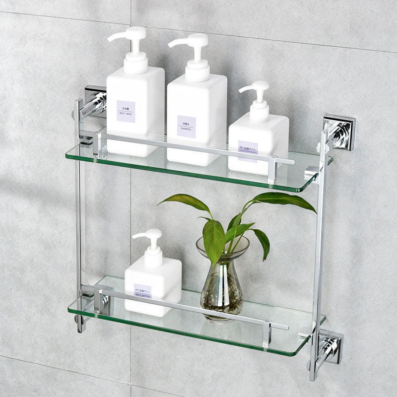 Bathroom glass shelf free punching toilet brush wall-mounted cup holder 304 stainless steel bathroom storage double layer